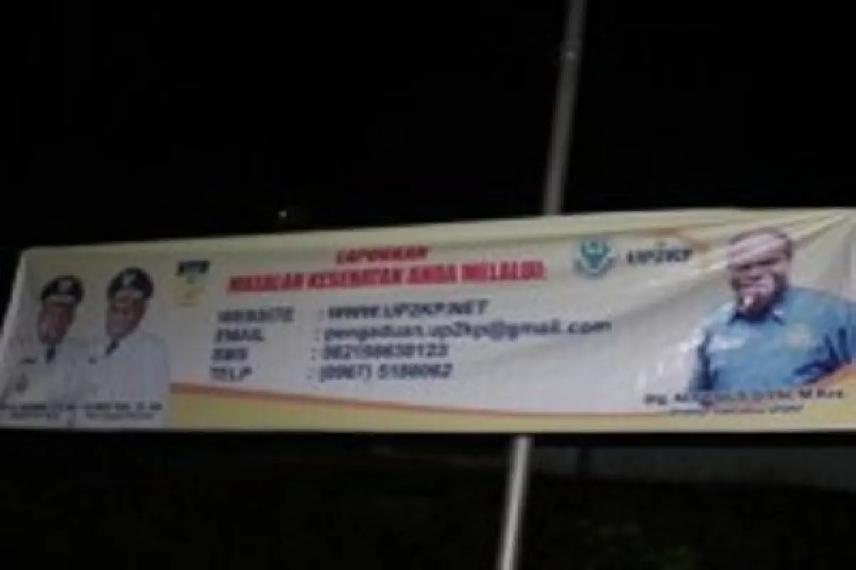 "Terima kasih kepada dua Relawan UP2KP yang diutus untuk memasang baner dan spanduk itu, hal ini merupakan alat kontrol bagi kami," ujarnya.