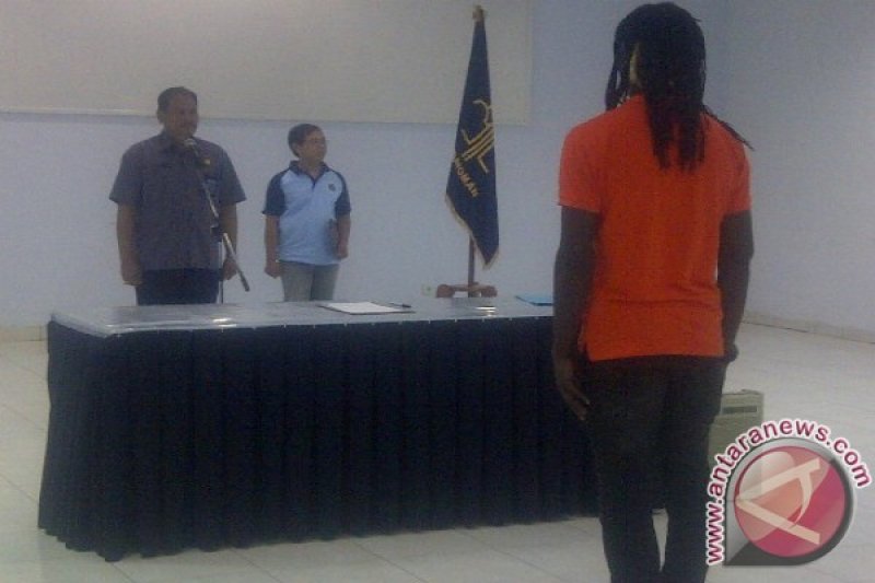 Jayapura (Antara Papua) - Kantor Wilayah (Kanwil) Kementerian Hukum dan HAM (Kemkumham) Provinsi Papua menggelar geladi resik penyumpahan terhadap pemain bertahan Persipura Jayapura Bio Paulin Pierre sebagai bagian dari Warga Negara Indonesia (WNI), di Kota Jayapura, Jumat.