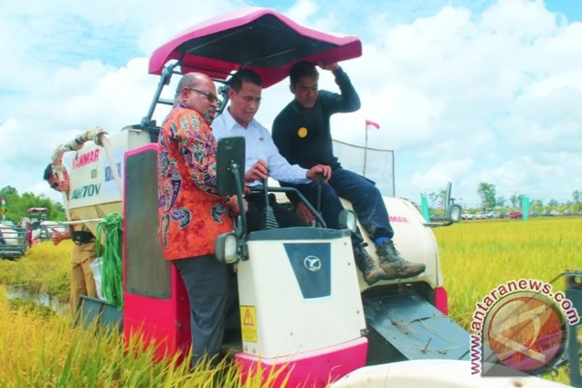 "Kemarin pak Menteri Pertanian sudah datang untuk panen raya dan serahkan bantuan alat mekanisasi, luar biasa alat itu" ujarnya.