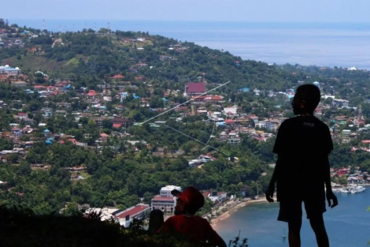 Sejumlah anak bermain di puncak Bukit Polimak, Jayapura. Puncak Bukit Polimak merupakan tempat terbaik untuk melihat panorama Kota Jayapura dan Samudra Pasifik dari ketinggian. ANTARA FOTO/Rivan Awal Lingga/kye/16