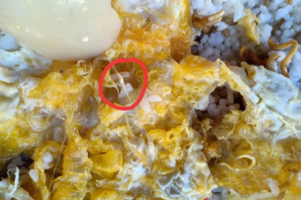 Korban menyampaikan bahwa saat itu ia membeli satu bungkus nasi telur goreng di warung untuk ke dua anaknya yang berumur 2 dan 5 tahun. Saat mengkonsumsi makanan, ke dua anaknya memanggil ibu mereka karena mereka menemukan belatung di dalam makanan.