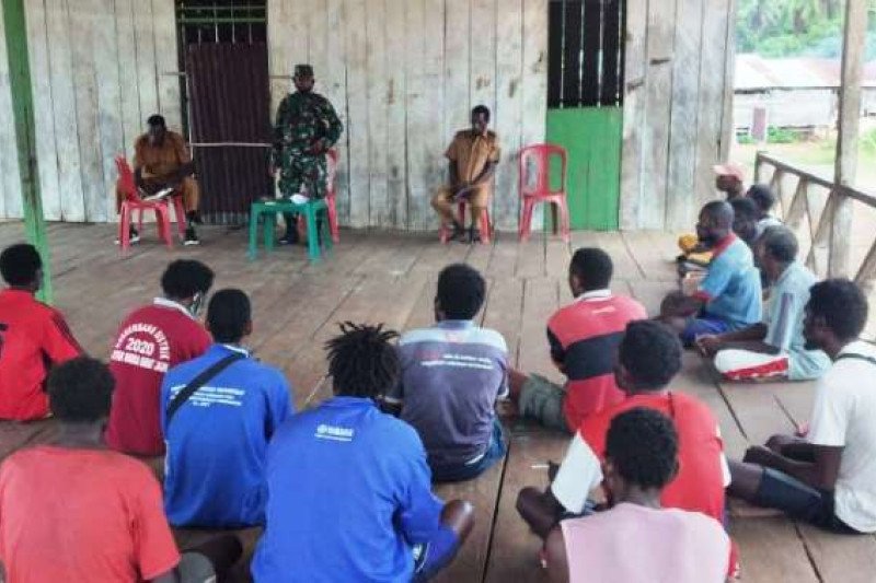 Mimika (ANTARA) - Danramil 1710-01/Kokonao Lettu Inf Y. Maniagasi bersama anggota melaksanakan komunikasi sosial (Komsos) dengan masyarakat Kampung Yaraya, Selasa.