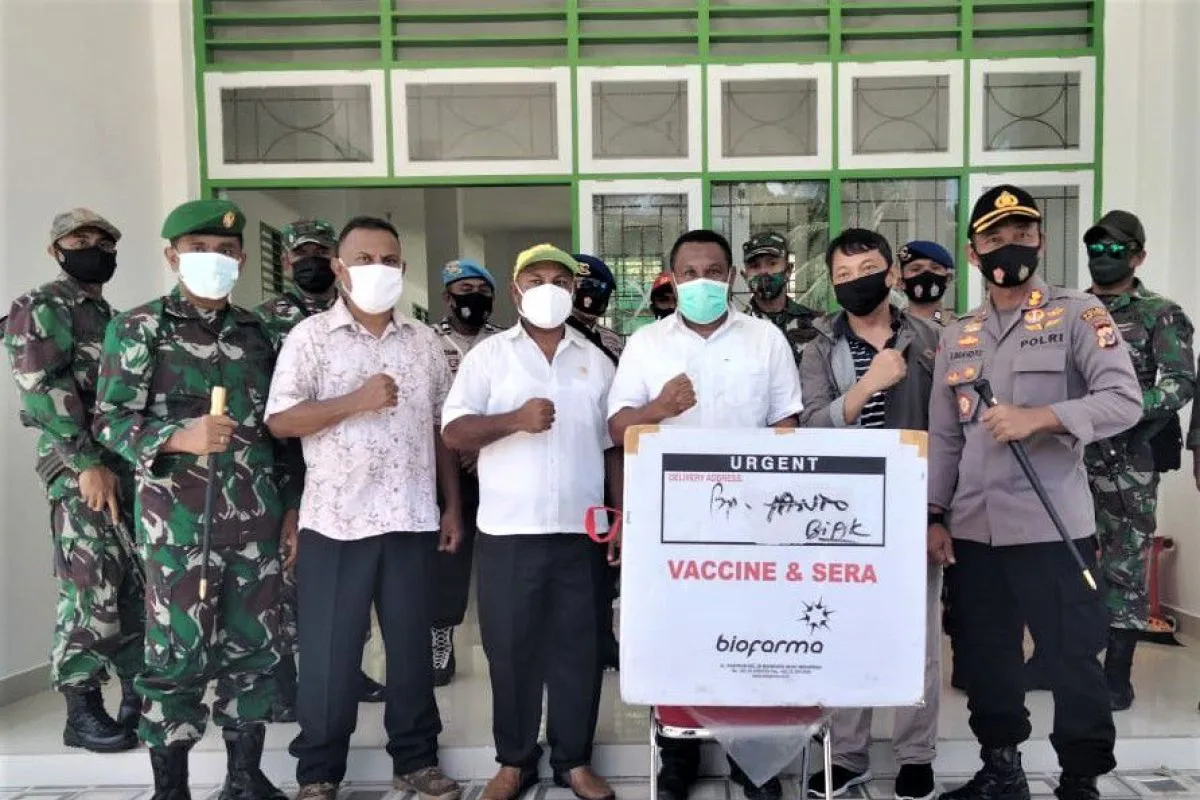 Keterangan diterima ANTARA, Kamis, disebutkan pengamanan kedatangan vaksin Sinovac di Pulau Yapen dipimpin langsung Dandim 1709/Yawa Letkol Inf Leon Pangaribuan bersama Kapolres Yapen AKBP Abdulah Wakhid Prio Utomo, Kadis Kesehatan Karolis Tanawani SKM, MPH serta Kabid P2P Dinkes Papua dr. Aaron Rumainum, M.Kes beserta rombongan.
