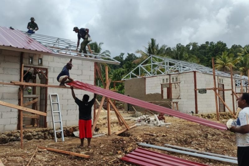 Biak (ANTARA) - Prajurit Satgas TNI Manunggal Membangun Desa (TMMD) Ke-123 Kodim 1708/Biak Numfor mulai memasang seng untuk atap 10 rumah masyarakat Kampung Kbusdori, Distrik Swandiwe, Kabupaten Biak Numfor, Papua.