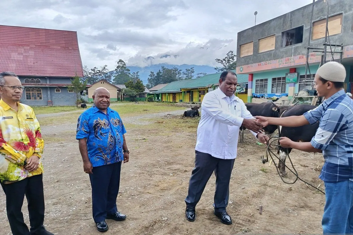 Bupati Jayawijaya Atenius Murib mengatakan, penyerahan dua ekor sapi kurban kepada Pengurus Peringatan Hari-hari Besar Islam atau PHBI Kabupaten Jayawijaya tersebut merupakan bentuk perhatian pemerintah kepada warganya yang merayakan Hari Raya Idul Adha 1446 Hijriah.