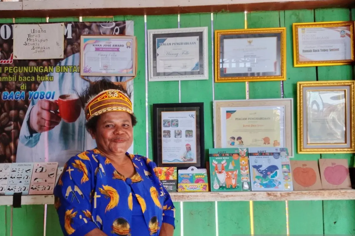 Dia menjelaskan perjalanan Rumah Baca Kampung Yoboi sudah 14 tahun dengan penuh suka duka, bermula dari kelompok belajar sederhana, kini telah berkembang menjadi wadah literasi yang diakui di tingkat provinsi dan nasional.