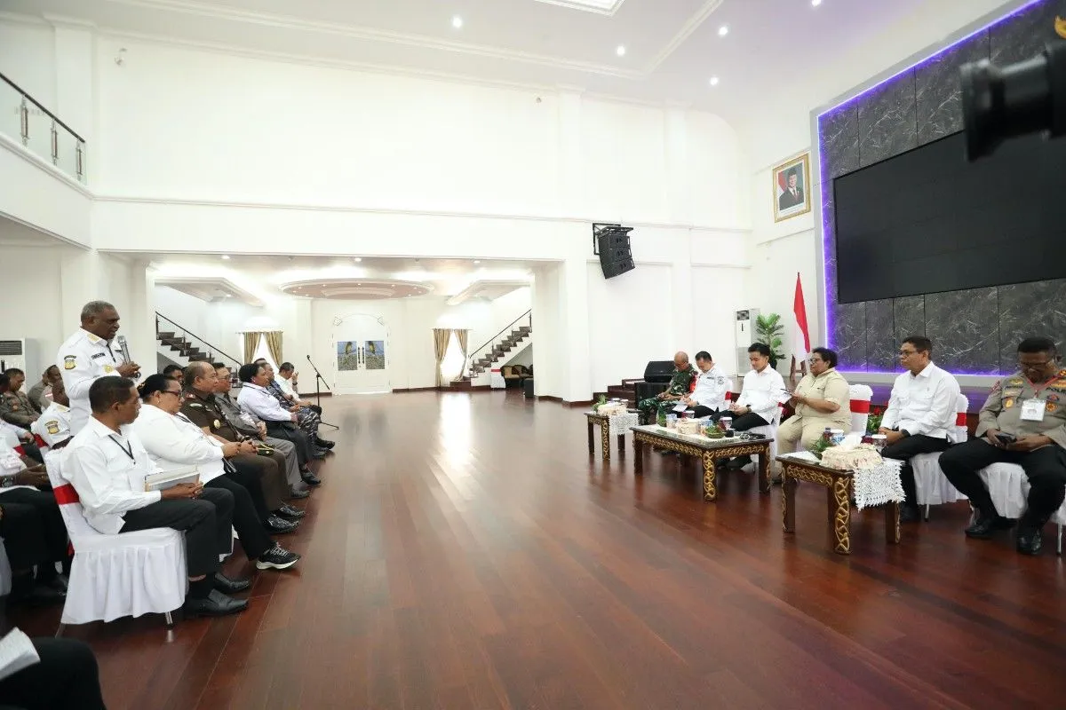 Sebelumnya, Wakil Presiden RI Gibran Rakabuming Raka melakukan kunjungan kerja dengan mengelar rapat bersama Kepala Daerah di sembilan kabupaten kota serta OPD Provinsi Papua, bertempat Gedung Negara, Kota Jayapura, Papua, Rabu (17/9).