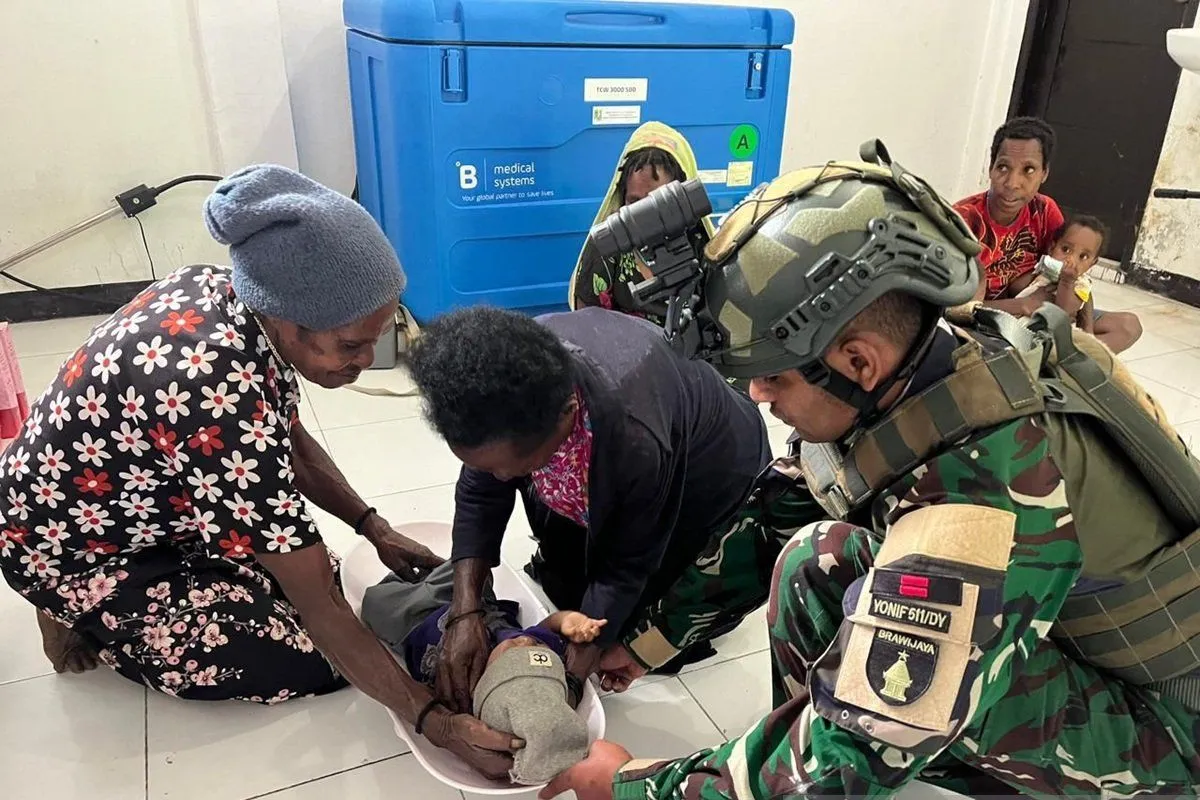 Wamena (ANTARA) - Satuan Tugas (Satgas) Yonif 511/DY bersama Dinas Kesehatan Kabupaten Lanny Jaya, Papua Pegunungan melalui Unit Pelaksana Tugas Daerah (UPTD) Puskesmas Malagaineri daerah setempat melaksanakan Posyandu.