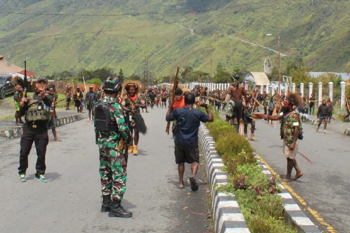 Dandim 1714/PJ Letkol Inf Bagus Kurniawan di Mulia, Kamis mengatakan pertikaian antar warga itu terjadi Rabu (26/11) berawal dari kesalahpahaman terkait aturan adat saat pelaksanaan acara bakar batu di kelompok 01, di mana kubu 02 dianggap melanggar batas wilayah adat dengan melintasi sektor yang seharusnya dihindari aksi saling serang yang memicu perang panah di tengah keramaian.