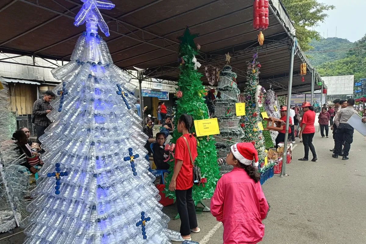 "Dalam kegiatan Gerbang Natal saat ini juga dihiasi dengan lomba pohon Natal dari sampah plastik daur ulang," katanya.