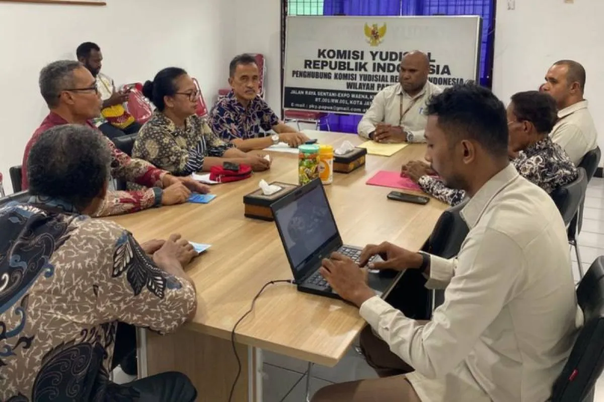 Jayapura (ANTARA) - Perwakilan Hakim Ad Hoc menyampaikan aduan kepada Kantor Wilayah Penghubung Komisi Yudisial RI Papua terkait kenaikan tunjangan hakim karir yang telah resmi naik sebagaimana diatur dalam Peraturan Pemerintah (PP) Nomor 42 Tahun 2025.