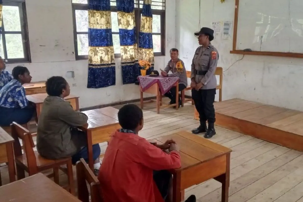 Jayapura (ANTARA) - Personel Polres Lanny Jaya yang tergabung dalam Satgas Si-Ipar Ops Rasaka Cartenz memberikan penyuluhan kepada para pelajar di SMP Negeri 4 Yogobak, Distrik Nogi, Kabupaten Lanny Jaya, Papua Pegunungan, agar menjauhi kenakalan remaja.